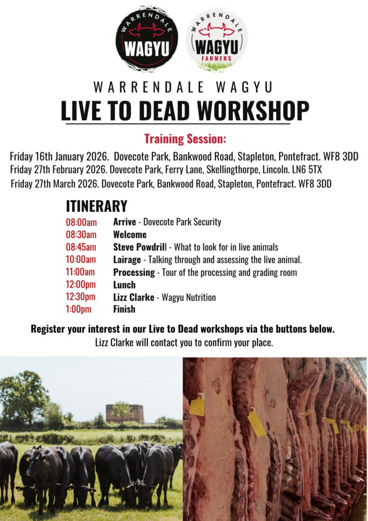 In collaboration with Dovecote, we are hosting live-to-dead training events at Skellingthorpe and Pontefract. The event gives Warrendale farmers the opportunity to learn or refresh their selecting skills on finished Wagyu cattle.